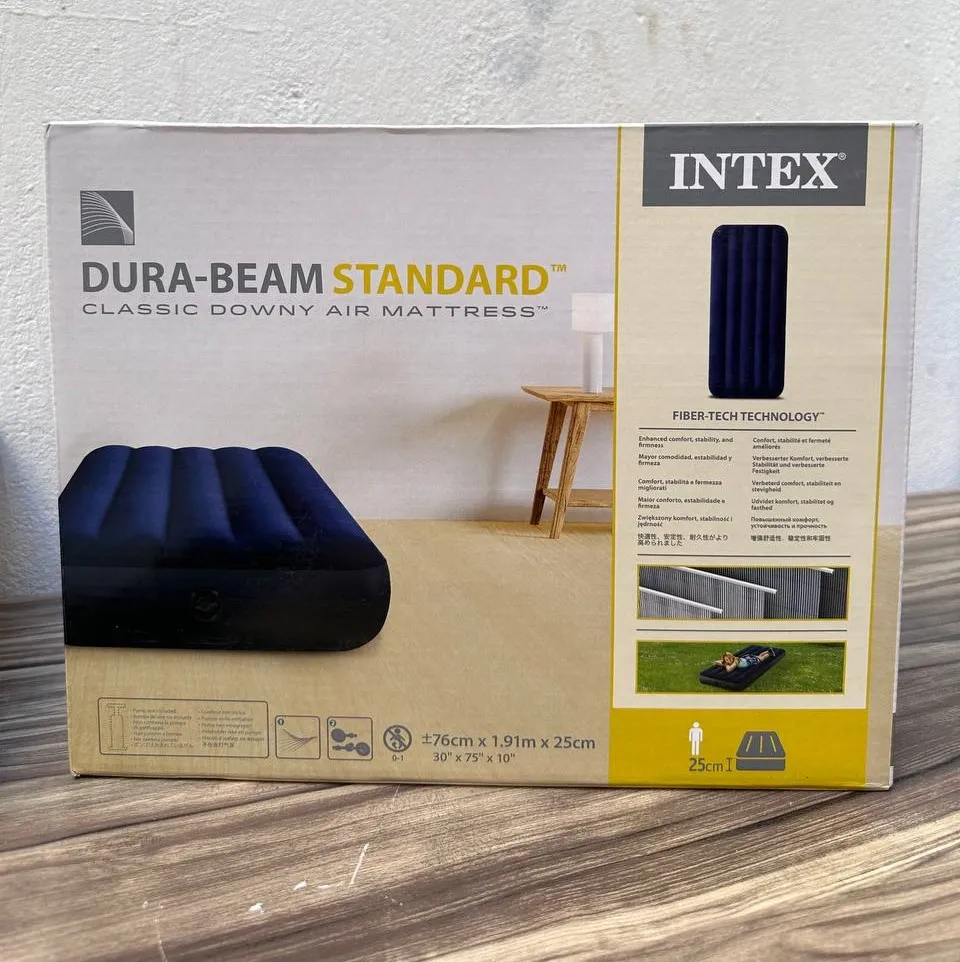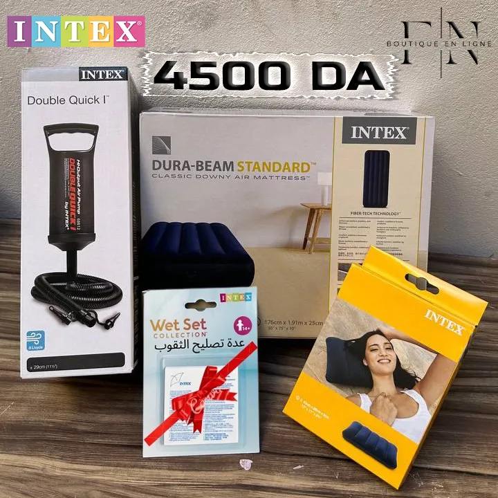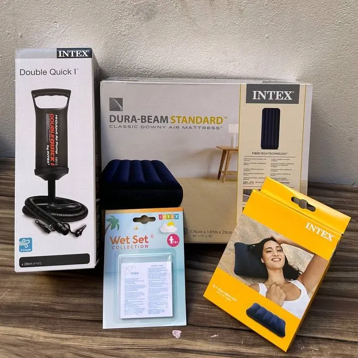PACK MATELAS INTEX 👇👇👇 ✅ Matelas: 1,91m×76cm×25cm ✅ Oreiller: 43cm×28cm×9cm ✅ Pompe: 0,9 L